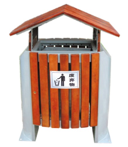 屋頂造型鋼木垃圾桶