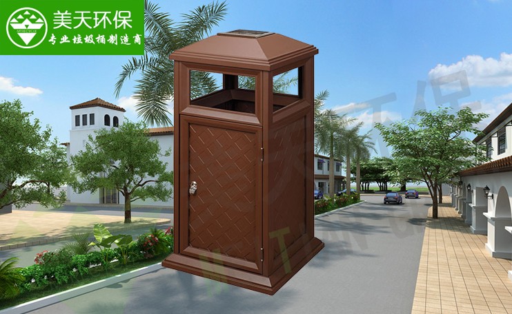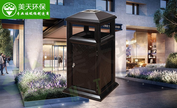 ">電話報價咨詢熱線:4008-787-781。美天環保這款垃圾桶采用特殊烤漆工藝,高檔美觀,適合戶外、高檔小區,別墅區等。